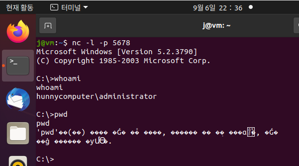 접속 후에는 Victim의 cmd를 통해 마음대로 조작할 수 있게 된다.