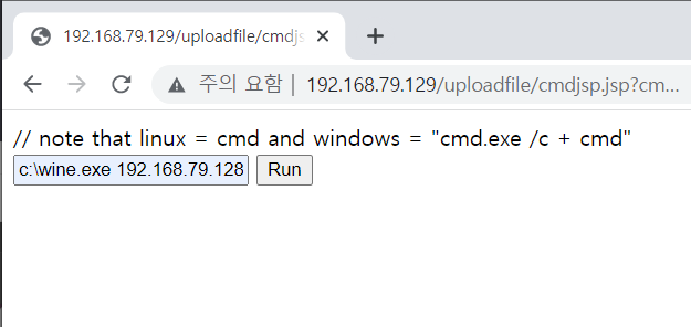 업로드된 웹쉘에는 victim 서버에 cmd 명령어를 입력할 수 있게 구성되어있다.