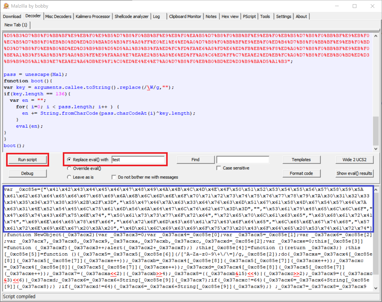 여러가지 인코딩된 문자열이나 알아보기 어려운 코드들을 Malzilla로 난독화 해제해본다.