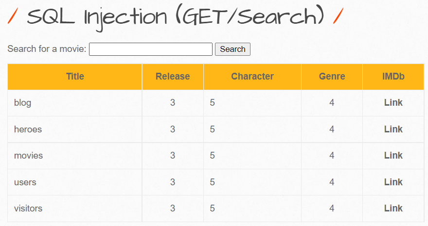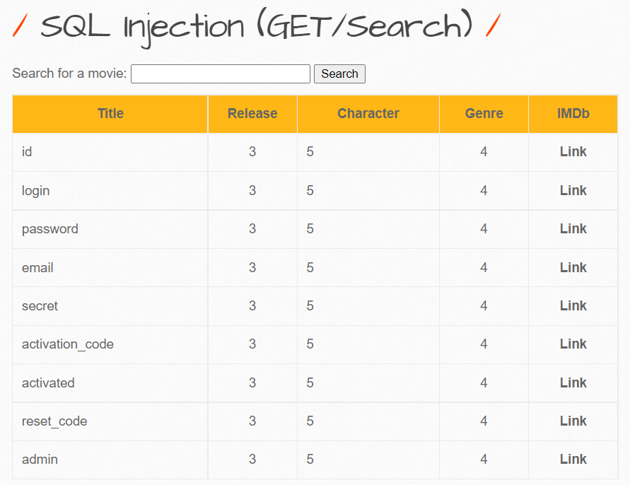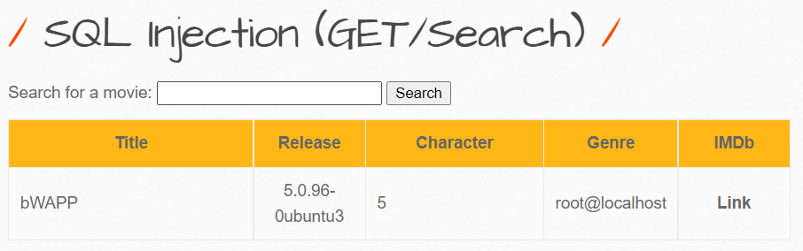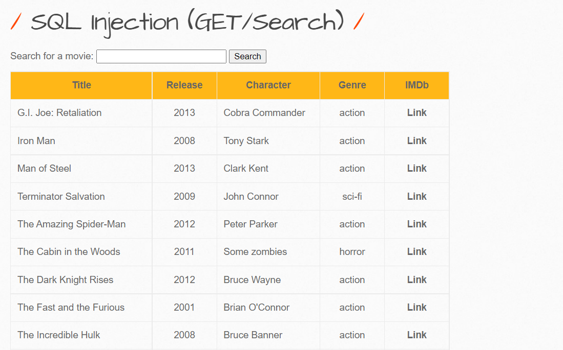 결과를 보면 d가 포함된 영화들이 출력되고 있다. 이를 통해 우리는 sql문을 유추해볼 수 있다.