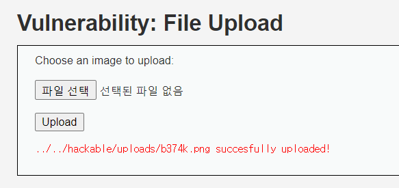 파일 업로드를 성공적으로 수행하였다. 하지만 이미지 파일이기 때문에 웹 쉘로서 이용할 수 없다.