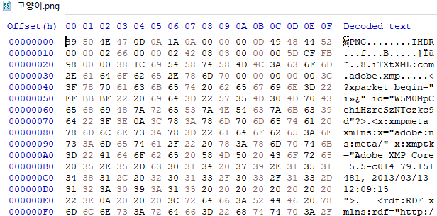 답은 파일 시그니처에 있다. 위에서 설명하였듯이 파일 형식을 보여주는 것에는 확장자뿐만 아니라 시그니처가 있다.