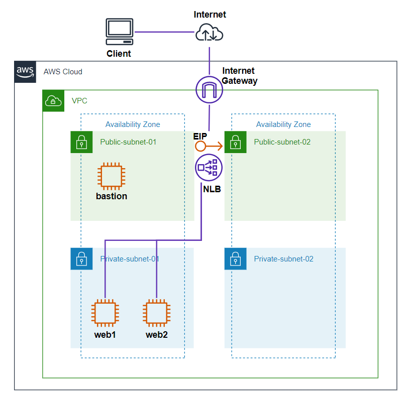 Network Load Balancer를 이용하여 웹 서비스 구축하는 실습을 진행해본다.