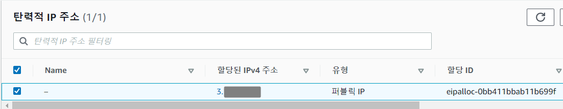 정상적으로 완료되면 위와 같이 공공 IP를 얻을 수 있다.