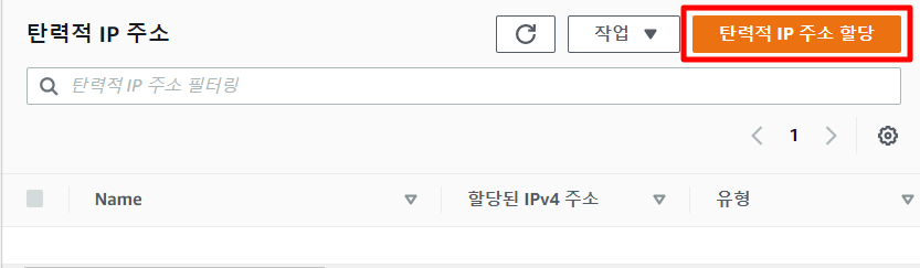 EC2의 사이드 바에서 탄력적 IP를 누르고 탄력적 IP 주소 할당을 받는다.