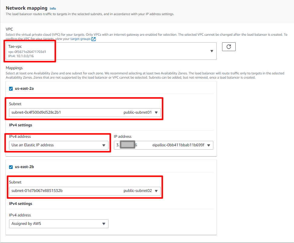 로드밸런서의 이름을 원하는 이름으로 설정한다. 실습에서는 tae-nlb로 설정하였다.