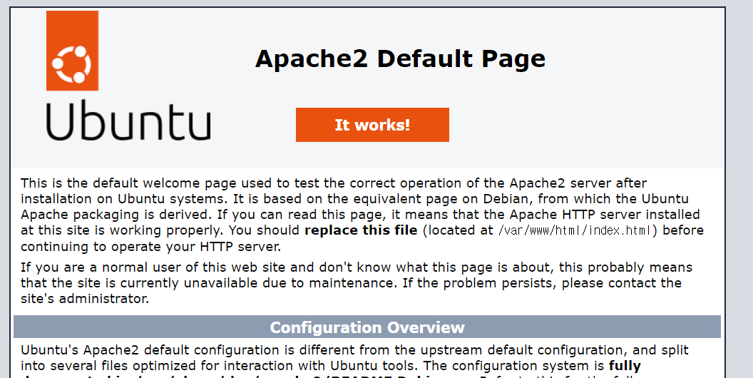 이렇게 Apache2의 디폴트 페이지가 나오면 성공이다.