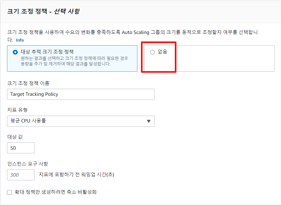이론에서 설명한 Target Tracking을 설정할 수 있는 부분이다.