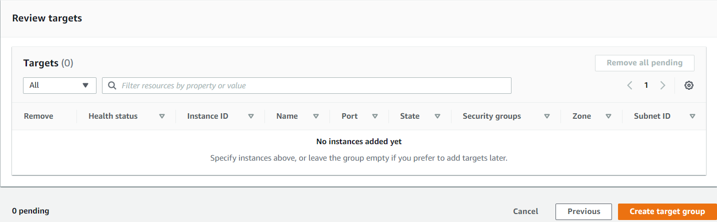 타겟 설정에서 아무 EC2도 선택하지 않은 채 타겟 그룹을 생성한다.