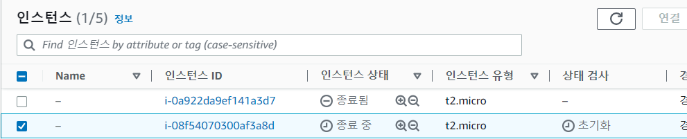 종료가 완료된 뒤 조금 기다렸다가 다시 확인하면 새로운 인스턴스가 실행되려고 준비중인 것을 볼 수 있다.