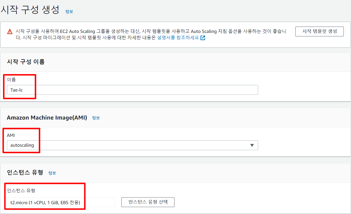 Auto Scaling 시작 구성