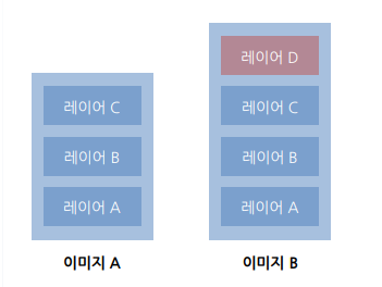 예 1) 이미지 A와 이미지 B가 설치되어있을 경우 이미지 A를 삭제한다 해도 이미지 B에서 같은 레이어 A, B, C를 사용하기 때문에 레이어는 삭제되지 않음