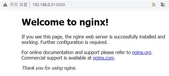 결과상으로는 정상적으로 실행되고 있으니 호스트의 8888번 포트로 접속해서 웹서버가 뜨는지 확인한다.