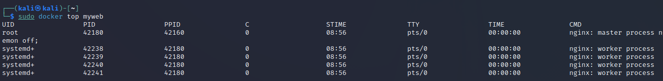 # 도커 컨테이너 내부 프로세스 정보를 확인