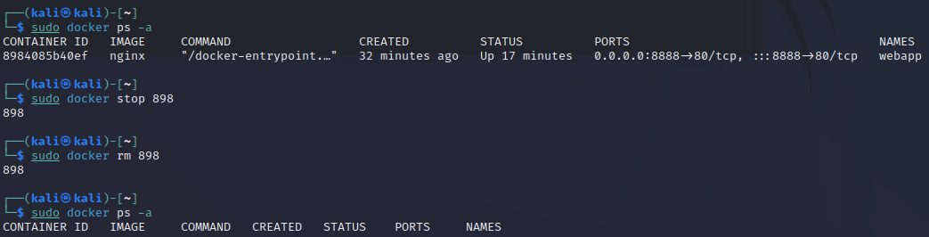 sudo docker create -it -p 8888:80 --name=webapp nginx