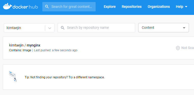 성공적으로 업로드되면 docker hub 사이트에서 내가 올린 이미지를 확인할 수 있다.