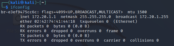 네트워크를 생성하면 ifconfig 명령어 시 생성된 네트워크를 확인할 수 있다.