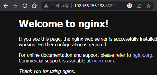 그러나 호스트의 네트워크를 사용하기 때문에 호스트 아이피:80로 접속하면 nginx 웹이 뜨는 것을 확인할 수 있다.