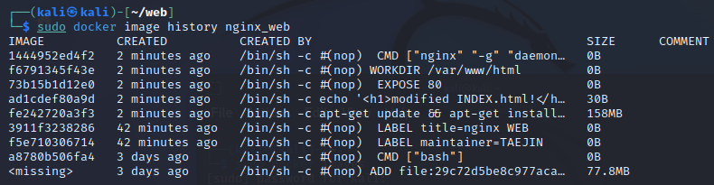 sudo docker image history nginx_web