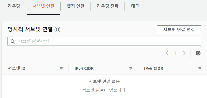 다음은 서브넷 연결 편집으로 가서 명시적 서브넷 연결을 설정한다.