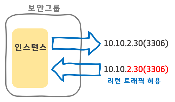 보안 그룹은 stateful 속성을 가지기 때문에 리턴 트래픽을 허용한다.
