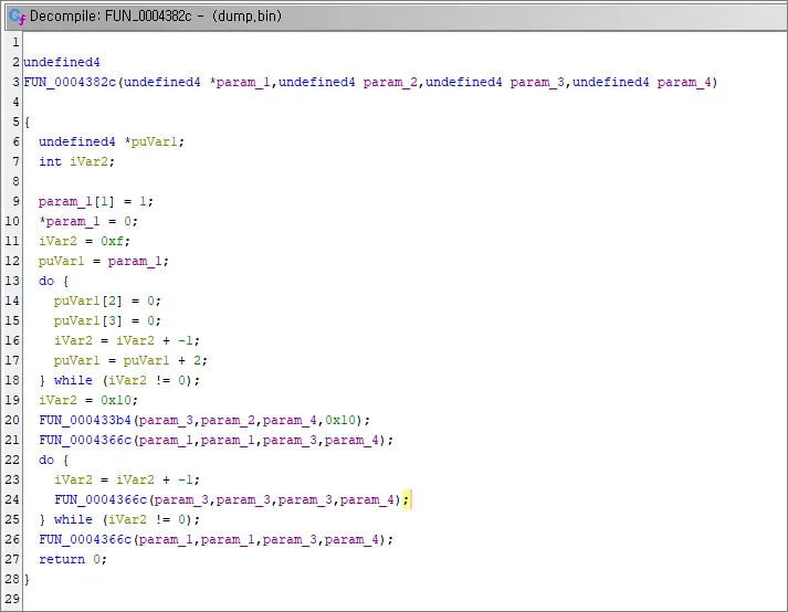 b. FUN_0004382c 함수는 param_2^65537 mod param4 연산을 수행하는 함수입니다.
