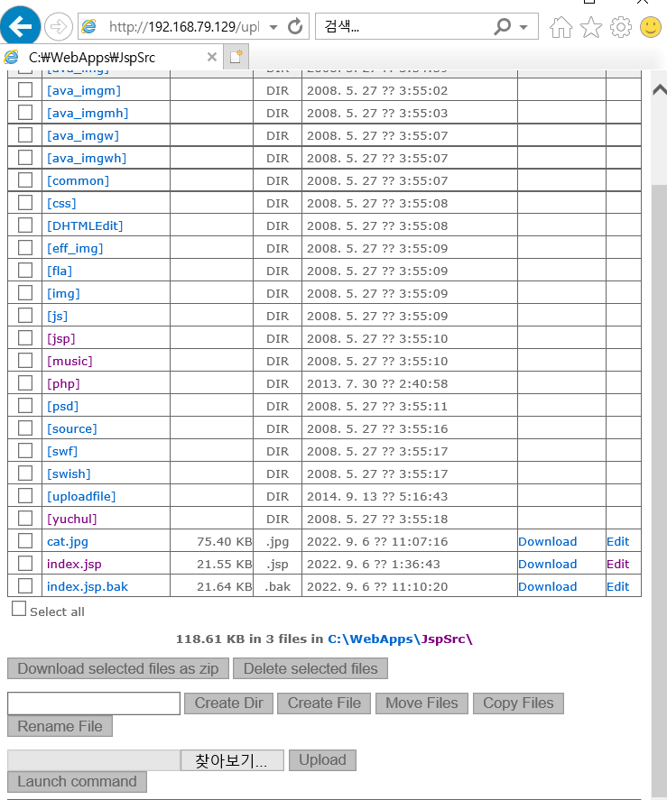 실습에는 jsp로 구현된 서버에 이미 웹 쉘이 침투하여 사용 가능한 상태이다.